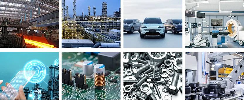 Kami kini telah menjalin kemitraan luas dengan klien di berbagai industri, termasuk baja, kimia, otomotif, medis, komunikasi, elektronik, perangkat keras, manufaktur mesin, energi baru, makanan dan minuman, furnitur, dan pengemasan.