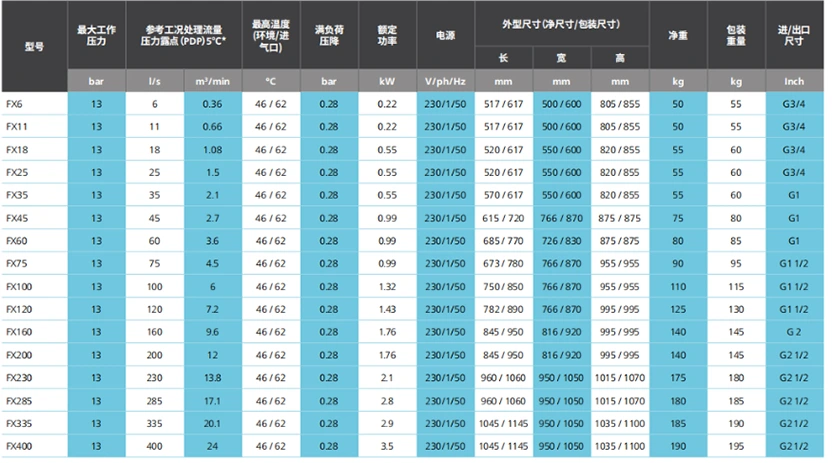 Pertahankan kapasitas pendinginan dalam berbagai kondisi pengoperasian dan pertahankan titik embun tekanan yang stabil untuk menghindari risiko pembekuan dan penyumbatan kondensat.