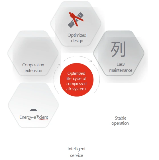 Sistem Kompresor Udara Sekrup Bebas Oli kami dirancang khusus untuk beroperasi pada suhu 46°C, yang lebih unggul dari sebagian besar desain yang hanya cocok pada suhu 40°C.