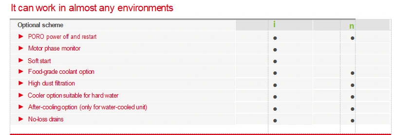 Kompresor kami menawarkan cairan pendingin food grade, penyaringan debu tinggi & pendingin air sadah, serta opsi lain yang disesuaikan dengan lingkungan keras, yang dapat memenuhi berbagai kebutuhan aplikasi Anda.