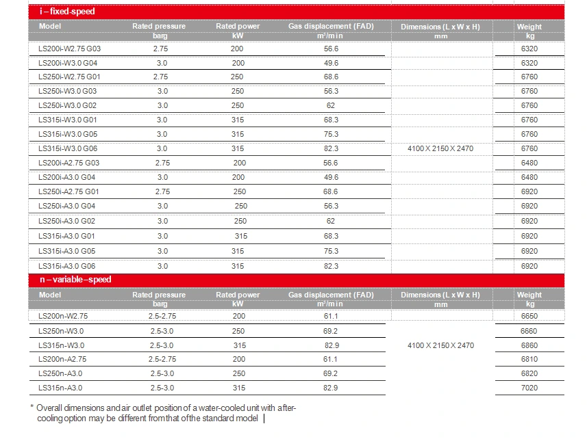 Kompresor udara ulir bebas oli tekanan rendah seri LS 200-315kW