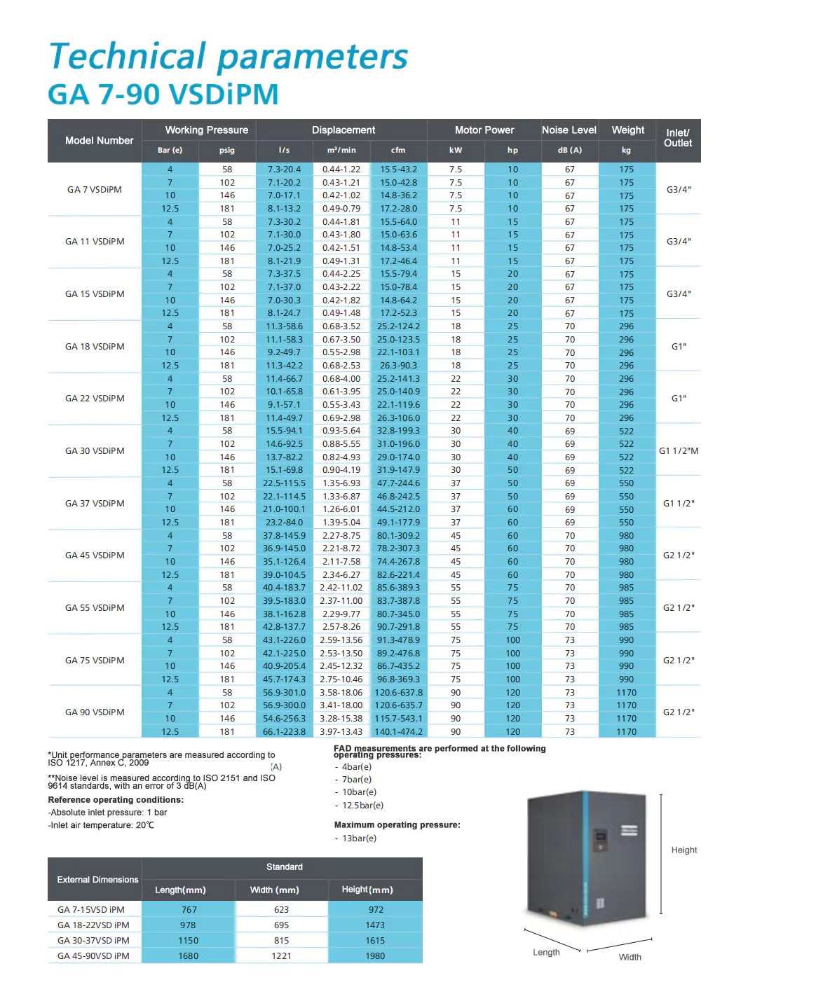 Seri VSDiPM Atlas Copco dapat secara otomatis menyesuaikan kecepatan motor untuk mengontrol secara tepat dan memenuhi kebutuhan penggunaan gas pelanggan. Dibandingkan dengan kompresor yang digerakkan dengan kecepatan tertentu, Kompresor Udara Frekuensi Variabel VSD menghemat rata-rata hingga 35% energi.