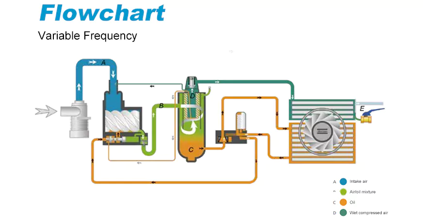 Kompresor Udara Frekuensi Variabel VSD menghemat lebih banyak ruang pemasangan dan dapat memasang lebih banyak mesin dalam ruang terbatas.