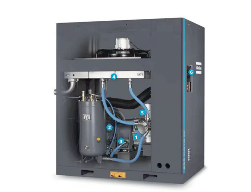 5. Semua kompresor Atlas Copco G(L)VSD telah menjalani pengujian dan sertifikasi EMC. Pengoperasian kompresor tidak akan mempengaruhi perangkat eksternal, dan sebaliknya.
